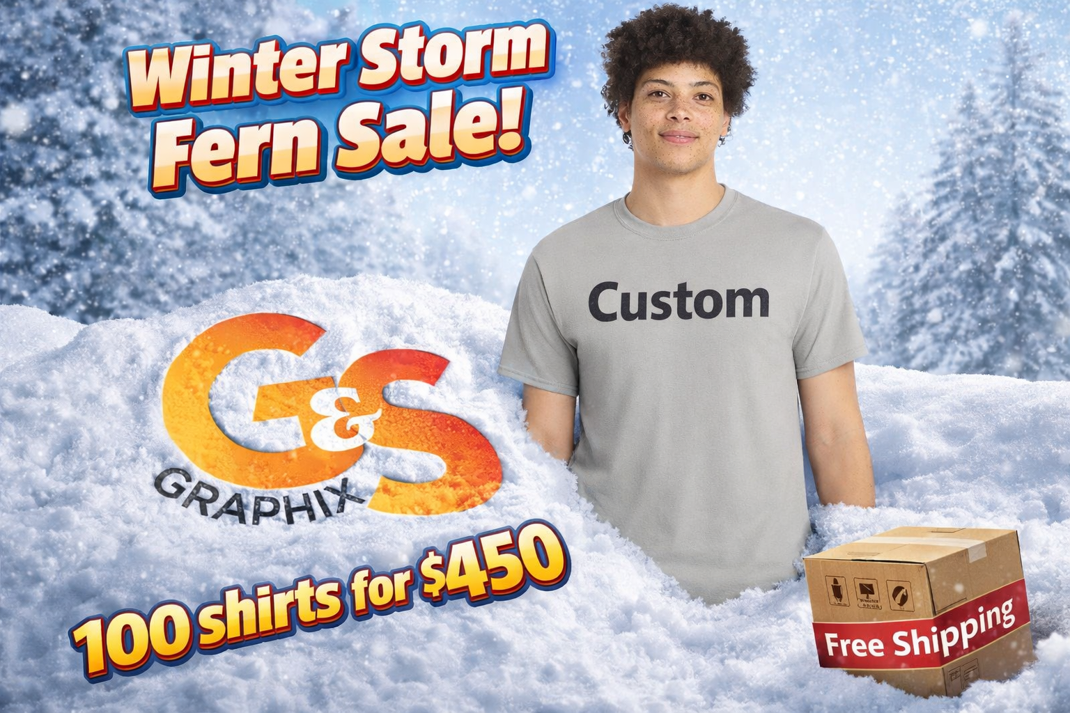 Get 100 (50/50 blend) shirts, with your custom printed design on the front and have them shipped right to your door! All for only $450* Sale ends when it hits 50 degrees!